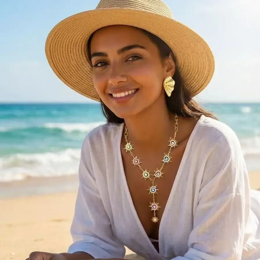 Ce collier soleil multicolore émaillé apporte une touche lumineuse et joyeuse à chaque tenue. Ses pendentifs colorés offrent un style vibrant et tendance, tout en restant élégants. Conçu en acier inoxydable durable, il résiste à l'eau et conserve son éclat. Un bijou expressif, original et parfait pour illuminer le quotidien avec douceur et modernité. En Acier Inoxydable, Sans Nickel, sans Cadmium et sans Sel de Plomb